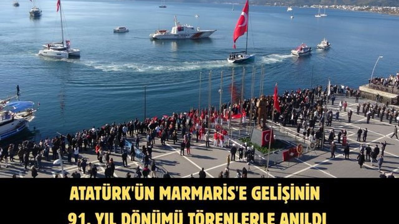 Marmaris Atatürk meydanında sabah saat 09.50 de başlayan Tören, Marmaris Kaymakamlığı, Aksaz Deniz Üs Komutanlığı ve Belediyenin Atatürk büstüne çelenk sunumuyla başladı. Aksaz Deniz Üs Komutanlığı Askeri Bandosu eşliğinde yapılan saygı duruşunun ardından İstiklal Marşı okundu. Günün anlam ve önemini belirten konuşmanın ardından, Atatürk Meydanı önündeki denizde Türk Bayrağı ve Atatürk posterleriyle donatılmış yelkenli tekneler ile Sahil Güvenlik botları siren çalarak geçiş yaptı. Bu sırada Mustafa Kemal Atatürk’ün Marmaris’e gelişini temsilen canlandırma gerçekleştirildi. Teknelerin geçişi esnasında, Dalaman 166. Jet Filo Komutanlığı’na bağlı muharip uçaklar da saygı uçuşu yaptı.