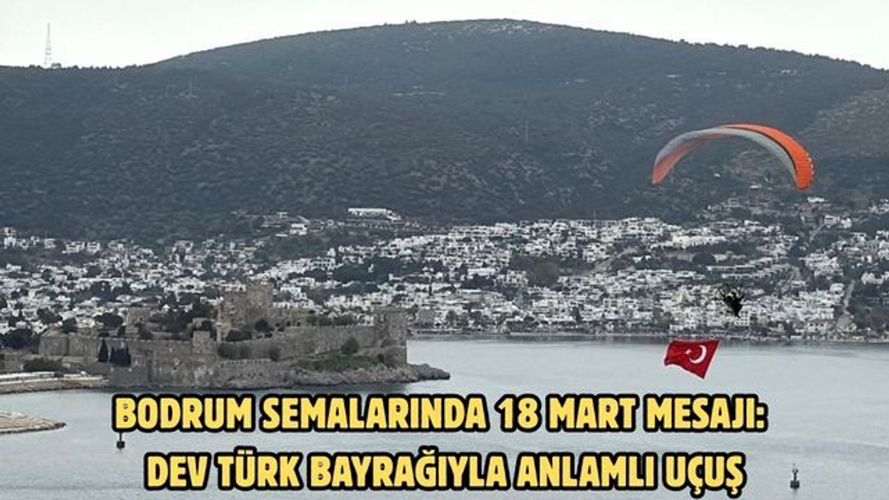 Bodrum’da yaşayan yamaç paraşütü ve paramotor pilotu Seyfi Çağlar Özgül, Çanakkale Deniz Zaferi’nin 111’inci yılı kapsamında anlamlı bir etkinliğe imza attı. Gümbet Değirmenler mevkisinde hazırlıklarını tamamlayan Özgül, paramotoruna bağladığı Türk bayrağıyla havalandı. Yaklaşık 45 dakika süren uçuşta Bodrum Kalesi, Kumbahçe ve Gümbet hattında süzülen Özgül, gökyüzünde açtığı dev bayrakla görsel şölen sundu. Sahil şeridinde bulunan çok sayıda kişi, o anları cep telefonlarıyla kayda aldı.